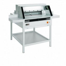 Commande bi-manuelle EASY-CUT avec déclenchement séparé pour la descente de la lame et de la presse. Écran de commande tactile pour le réglage de la butée arrière. Dispositif de pression automatique. Lame de qualité supérieure en acier d'Allemagne. Entraînement électro-mécanique de la lame. Porte lame tout en acier avec glissières réglables. Porte outils pratique sur la table arrière.