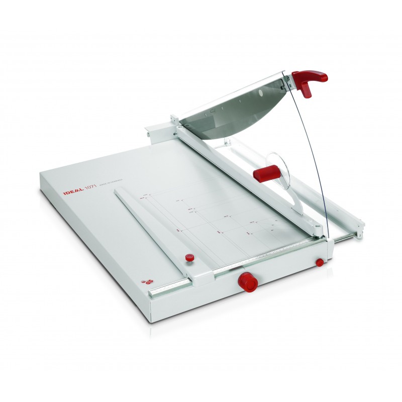 Lame et contre-lame réaffûtables en acier d'Allemagne. Pression manuelle dosable par levier. Parfaite visibilité de la ligne de coupe.